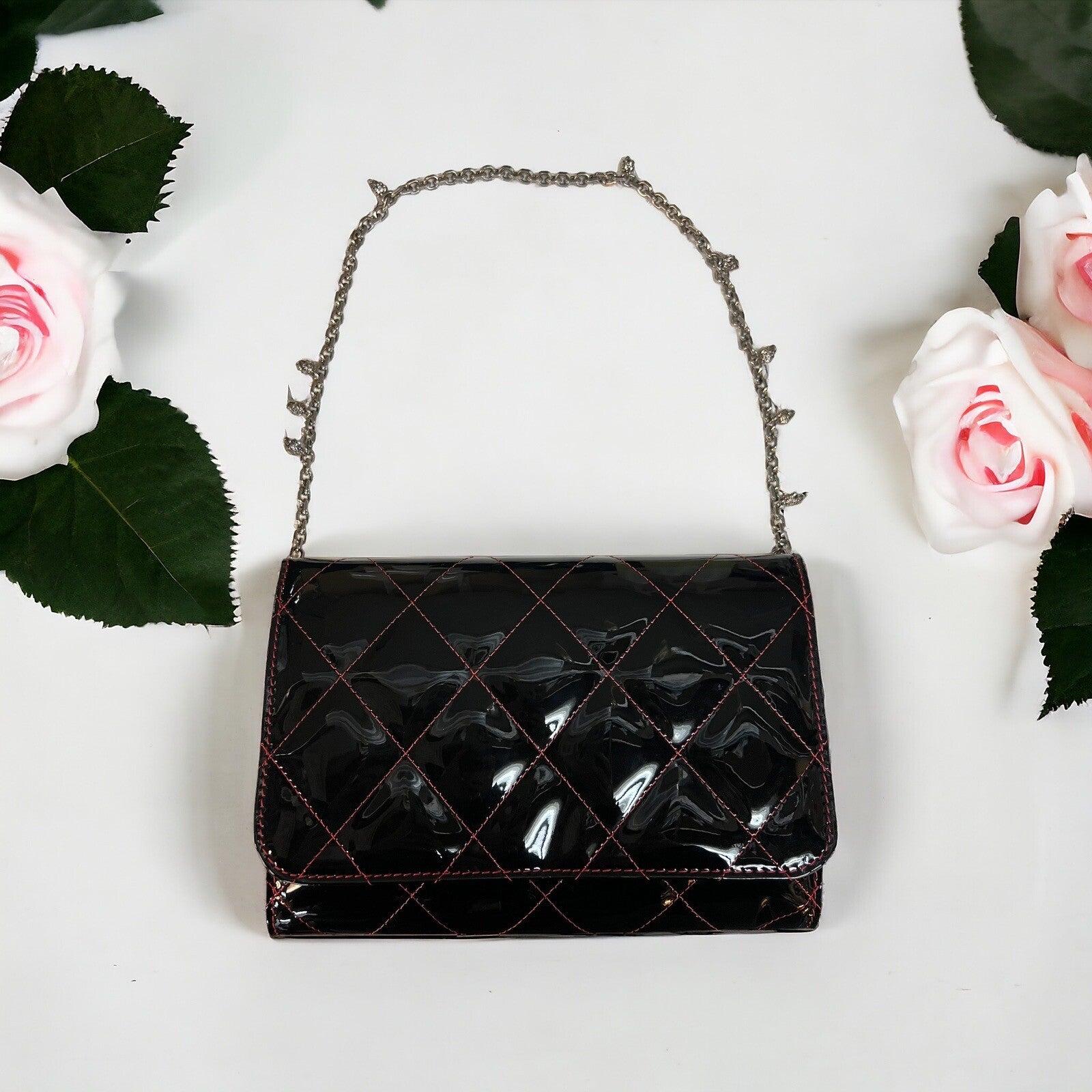 Alexander McQueen Black Patent Skull Chain Bag Quilted