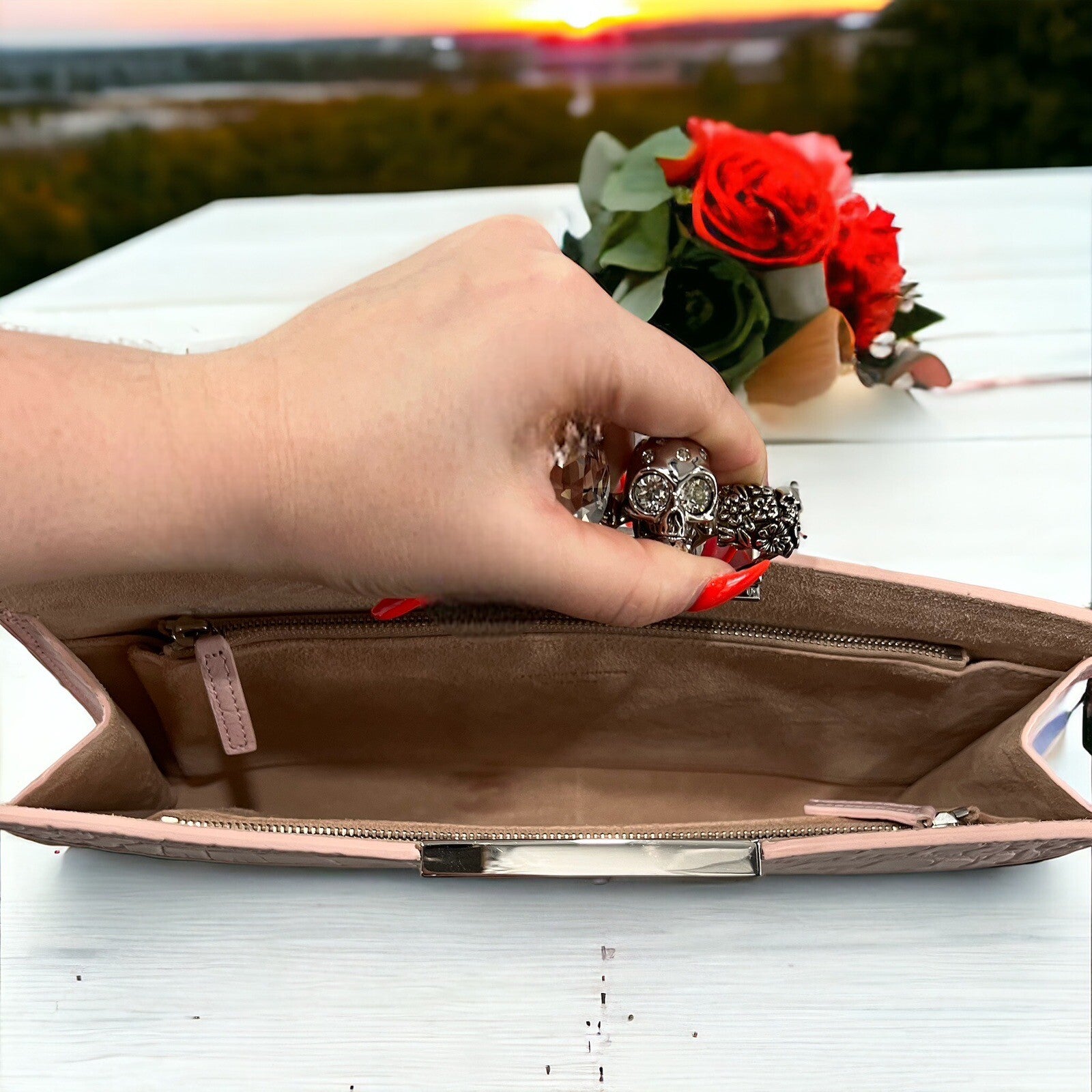 Alexander McQueen Pale Pink Crock Embossed Flat Knuckle Clutch