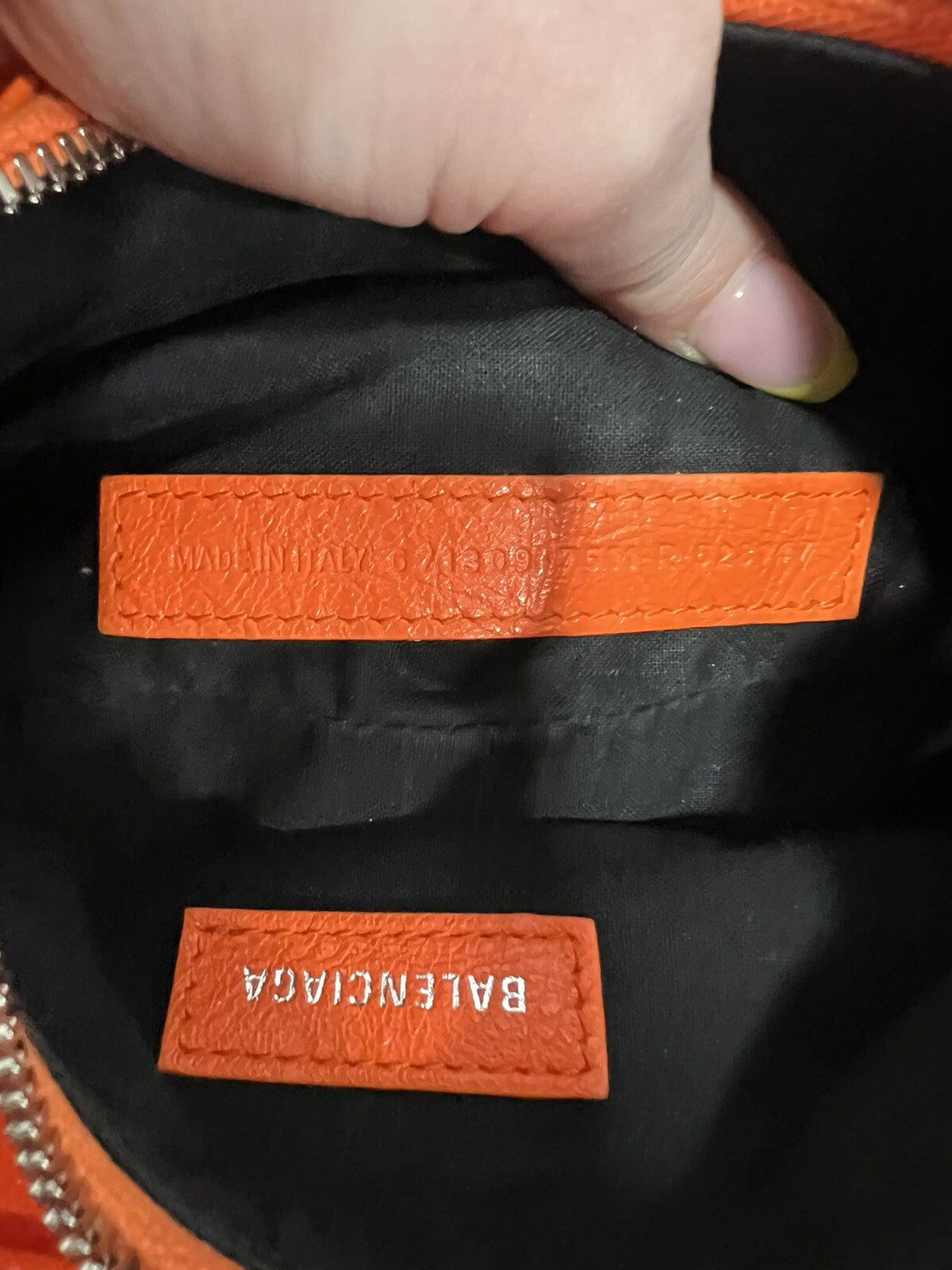 great preowned condition Balenciaga neon orange le cagole xs in arena leather. No box or duster currently retails for 2550.00 on the website
