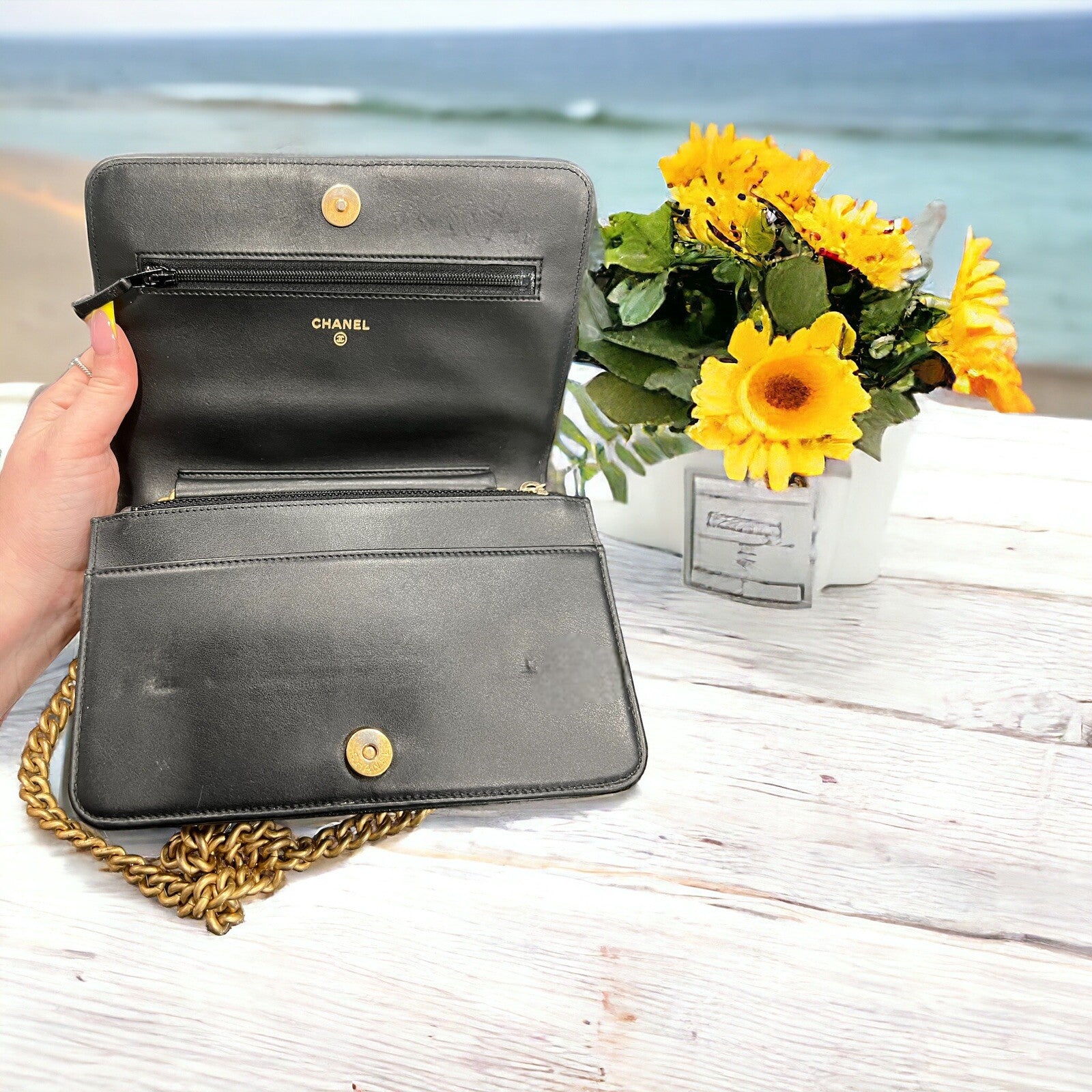 Chanel Caviar Black/Gold Boy Wallet On Chain Retail $3575