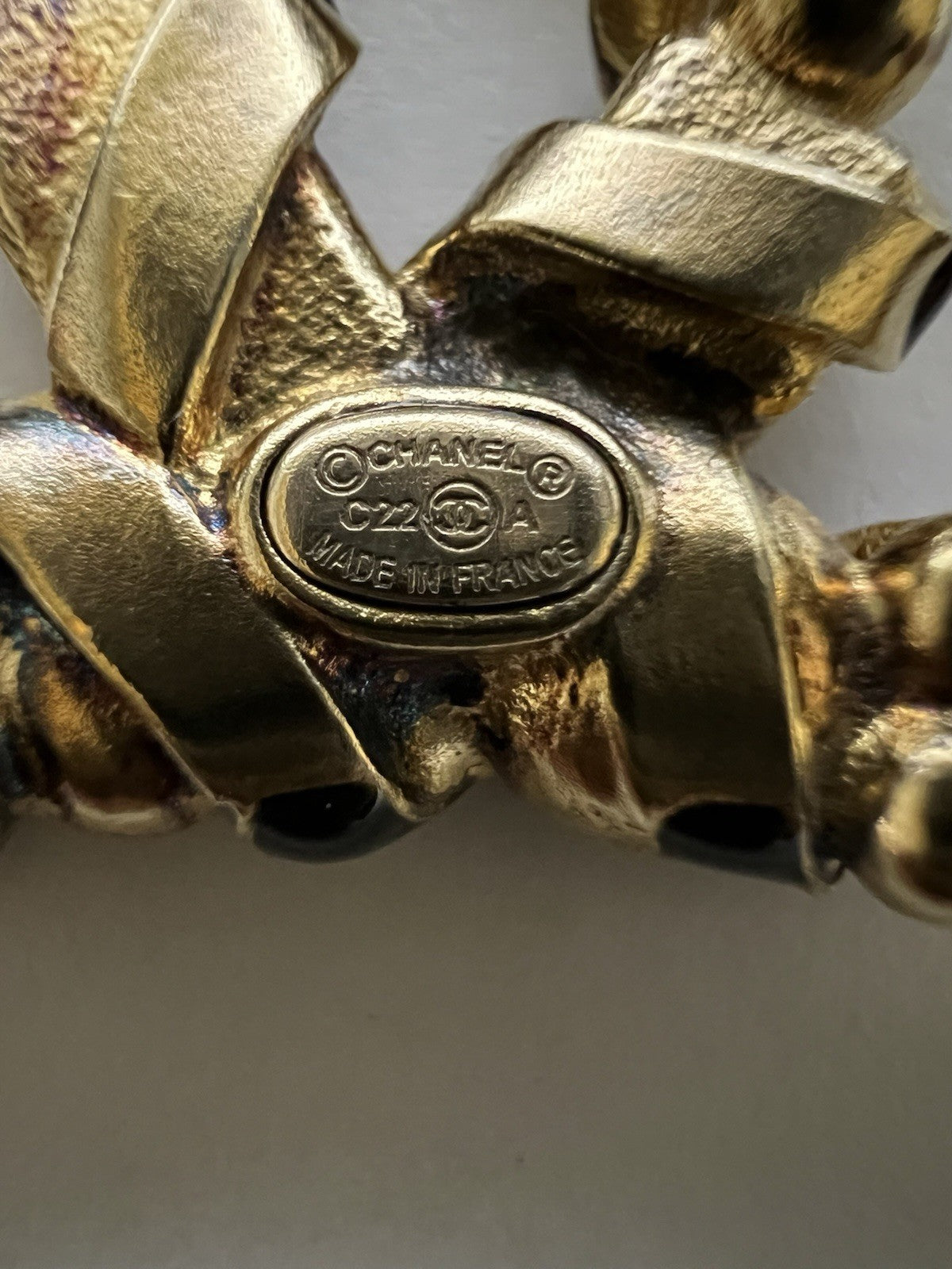 Chanel Crystal Baguette Pearl Resin CC Brooch Gold Black Pearly White AUTHENTIC