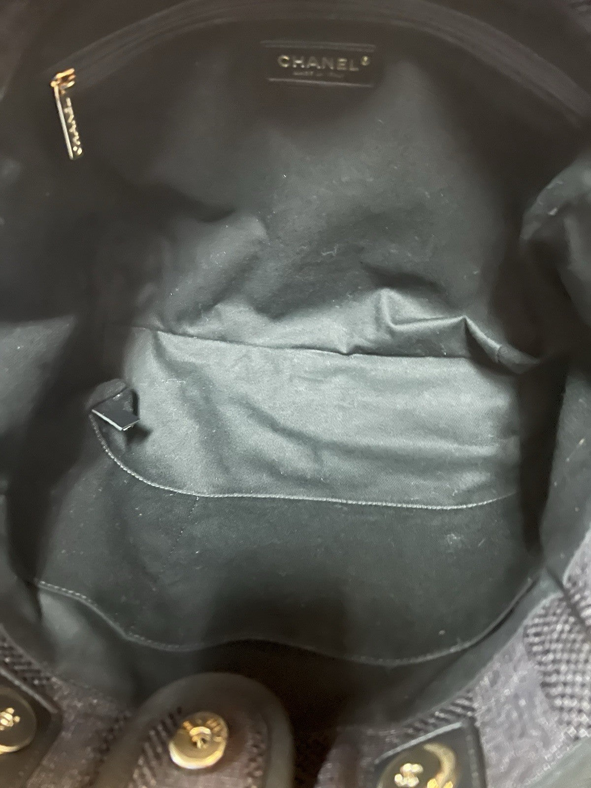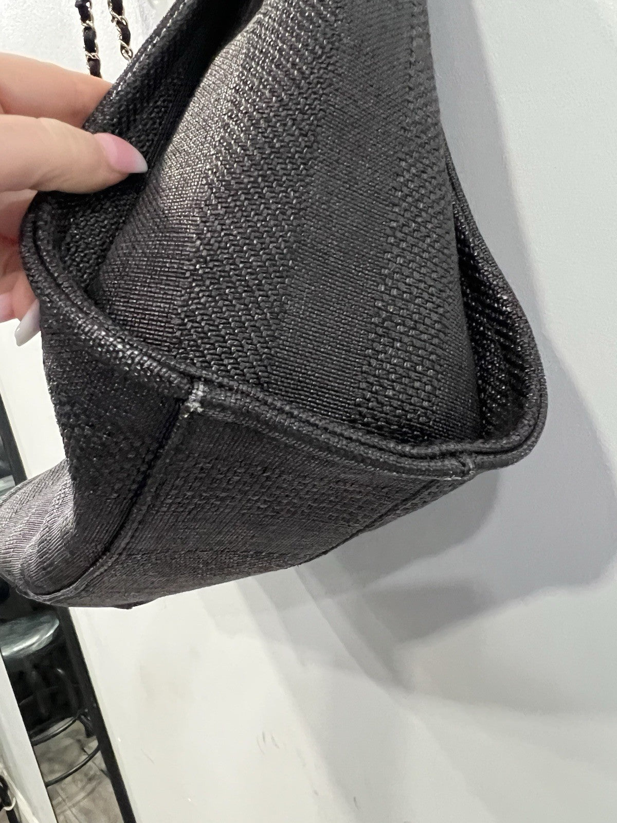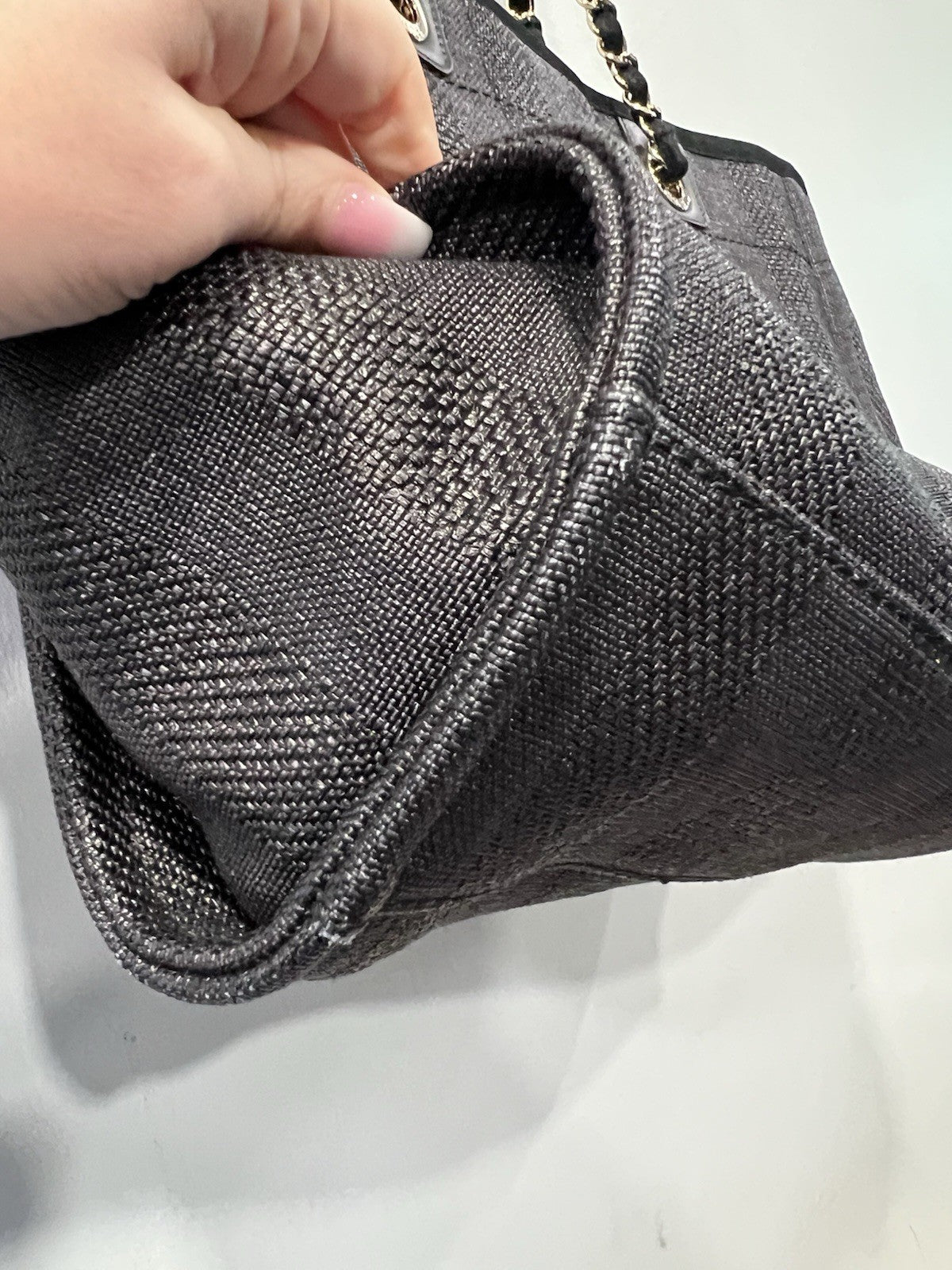 Chanel Mixed Fibers Striped Small Deauville Tote Navy Blue W/Authenticity