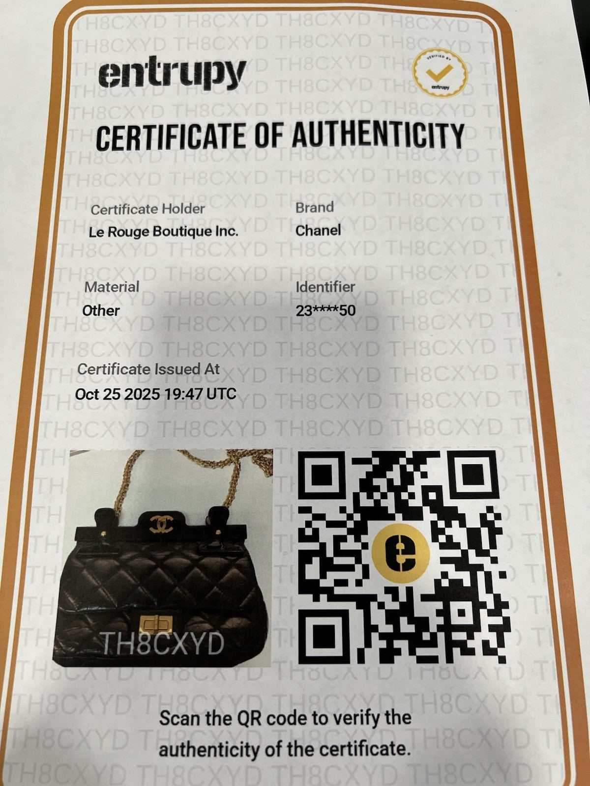 Chanel Small 2.55 Reissue Flap Hanger Bag W/Duster & Authenticity