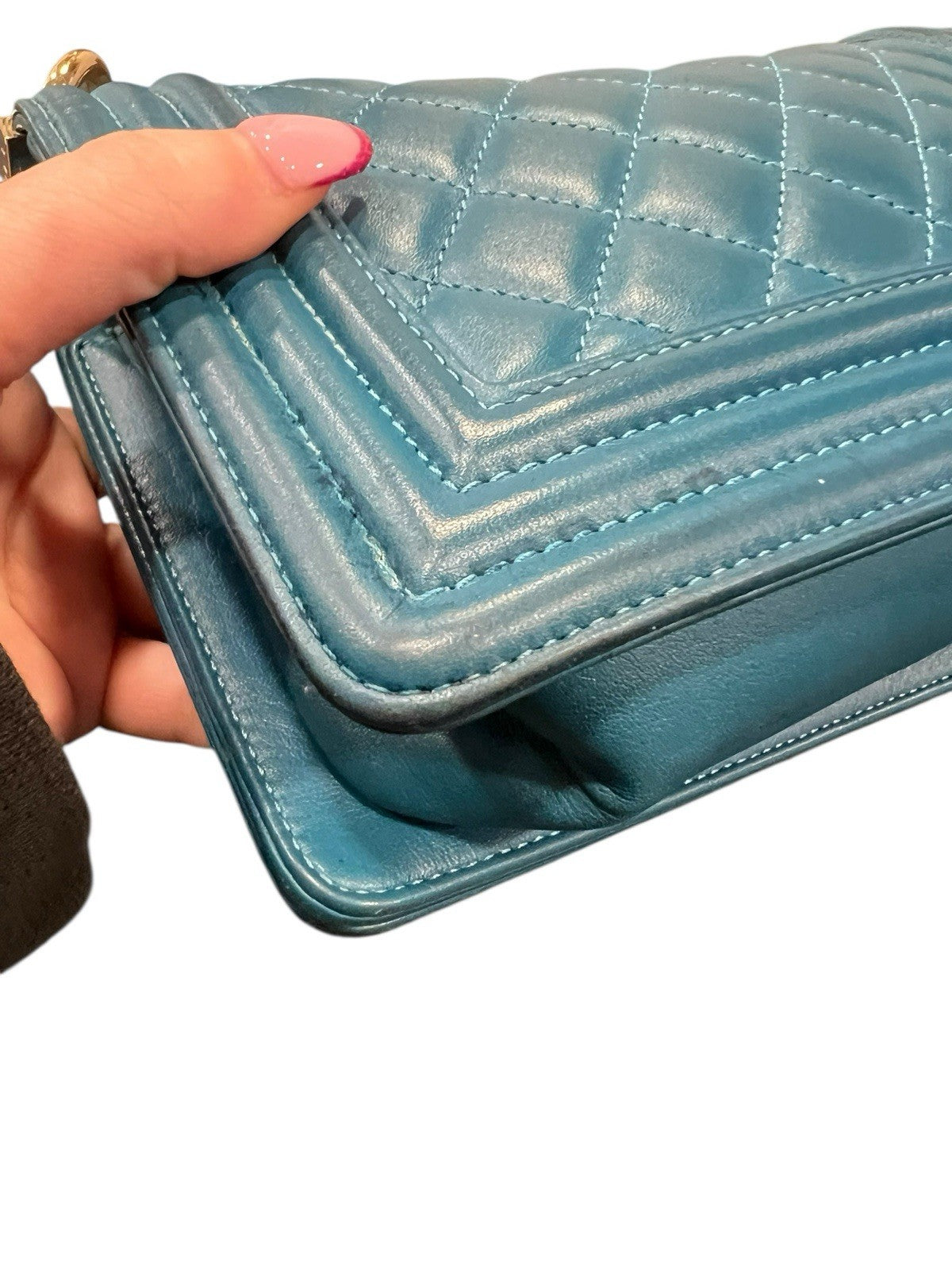 Chanel Small Two Way Boy Cobalt/Gold Chain Bag Includes Authenticity MSRP $6700