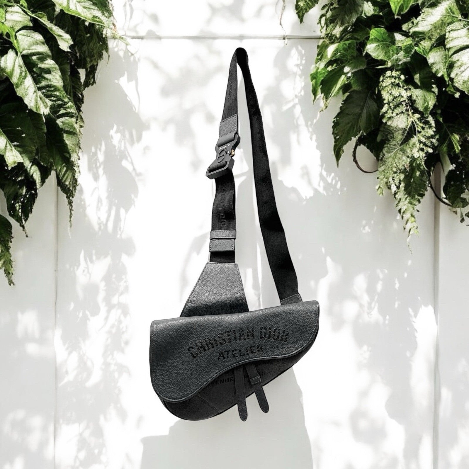 Christian Dior Men's Dark Grey/Black Atelier Saddle Bag Retail $3500