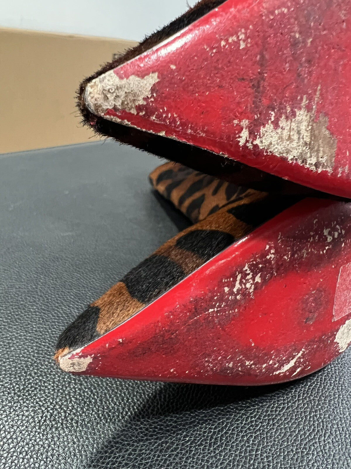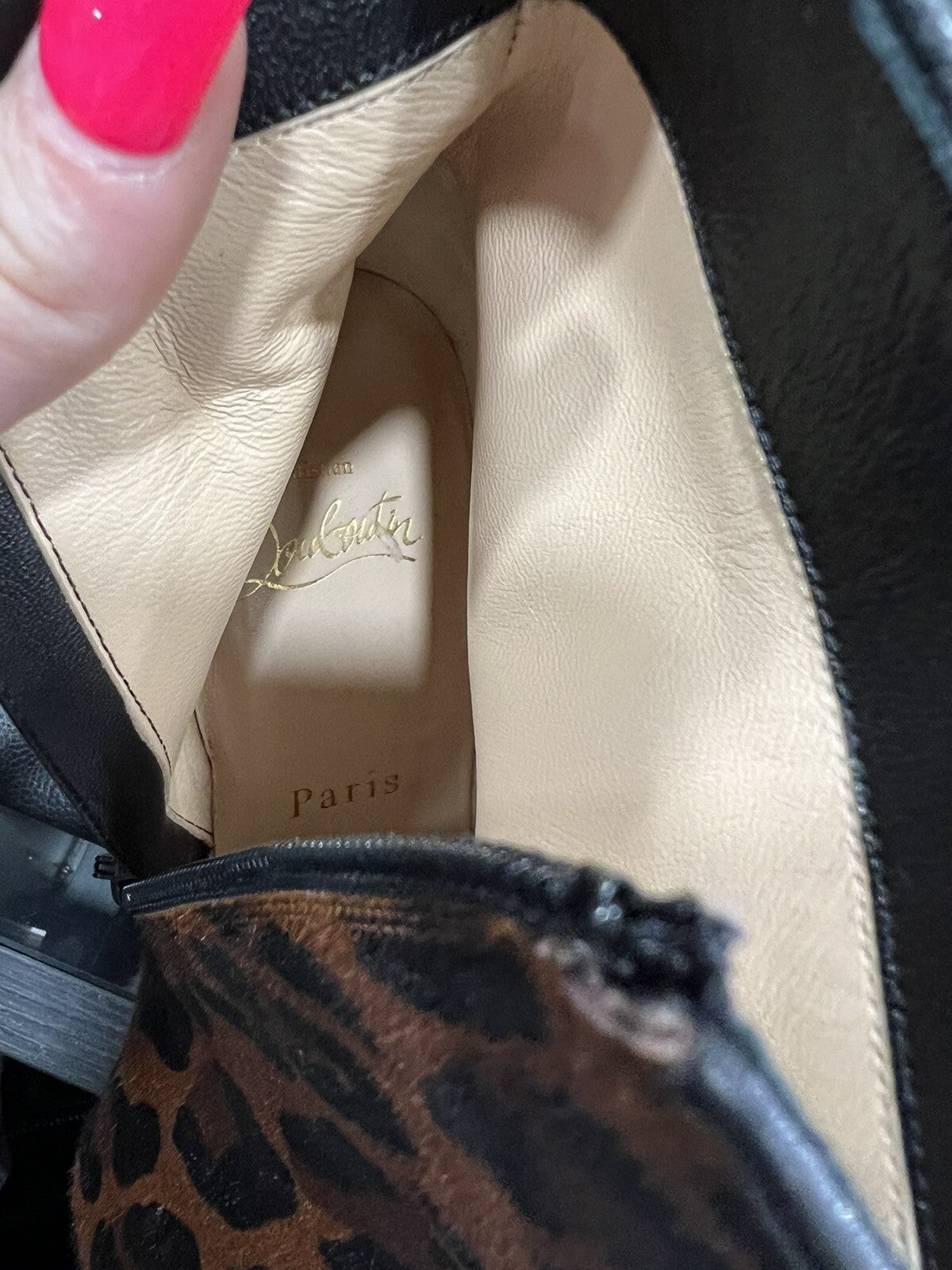 Christian Louboutin So Kate Leopard Pony Hair 55 Ankle Boot Kitten Heels 37/US7