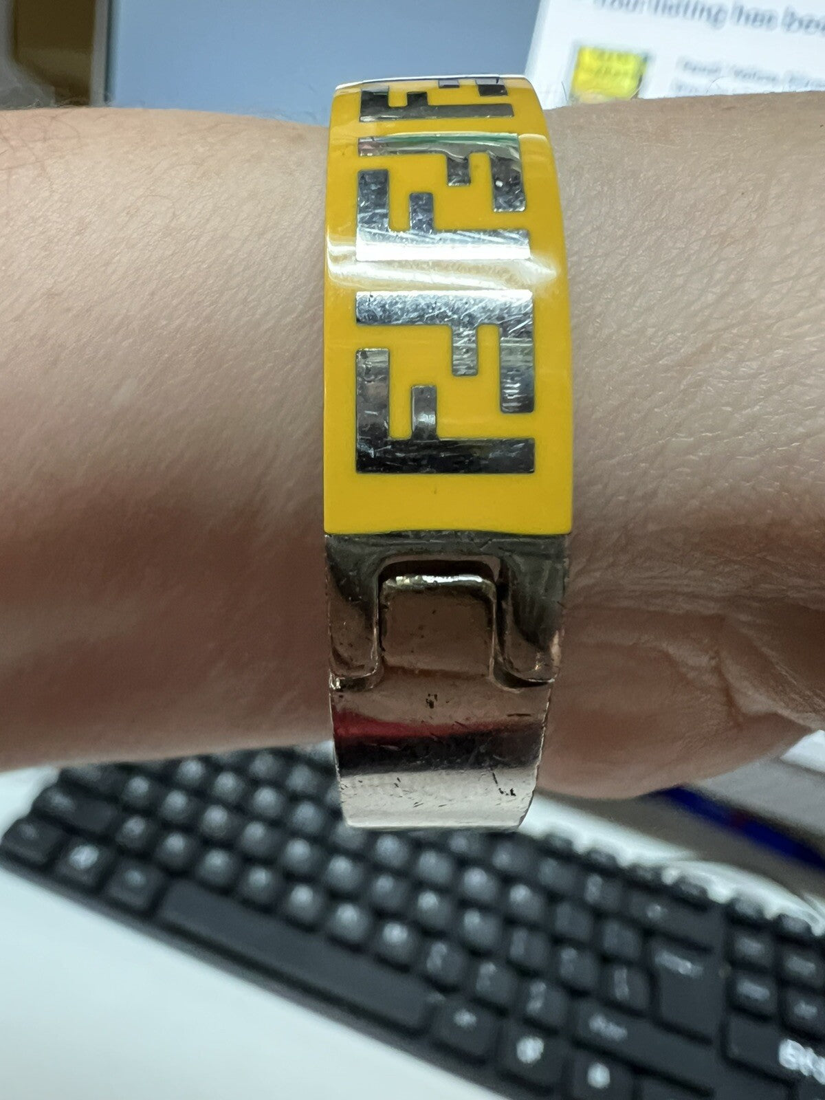 Fendi Yellow Silver Toned Enamel Forever Bracelet M