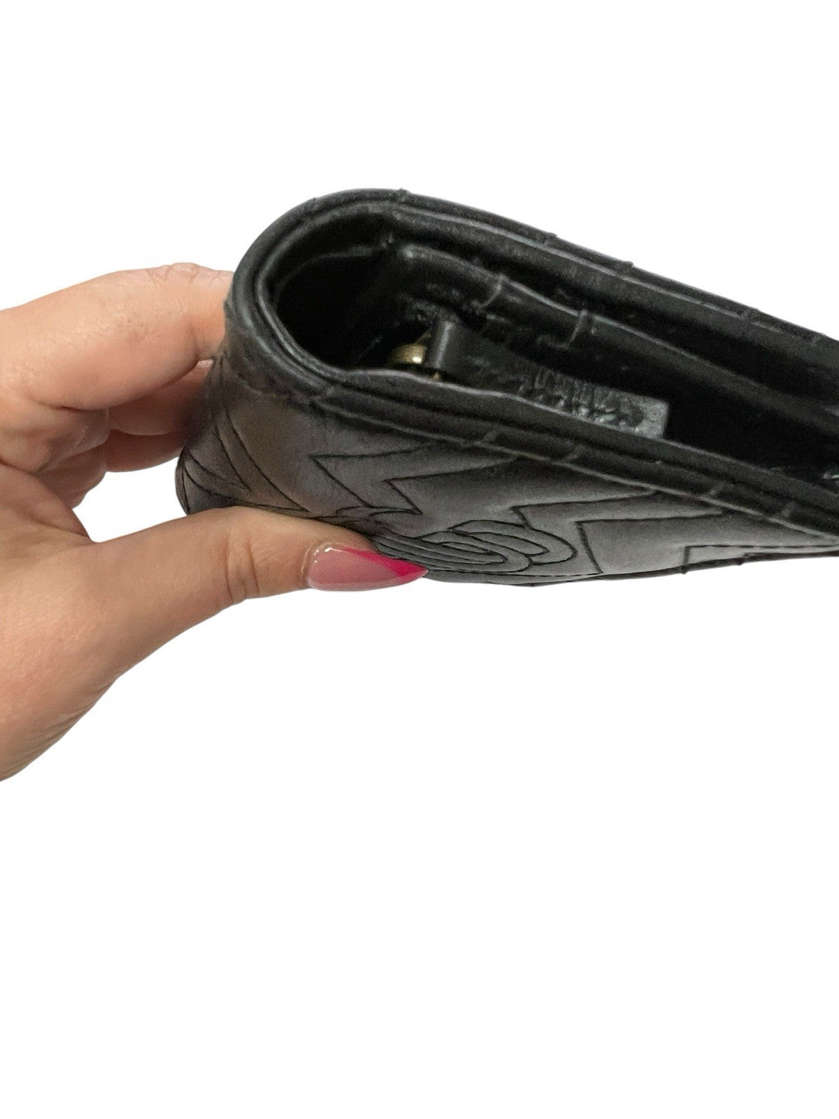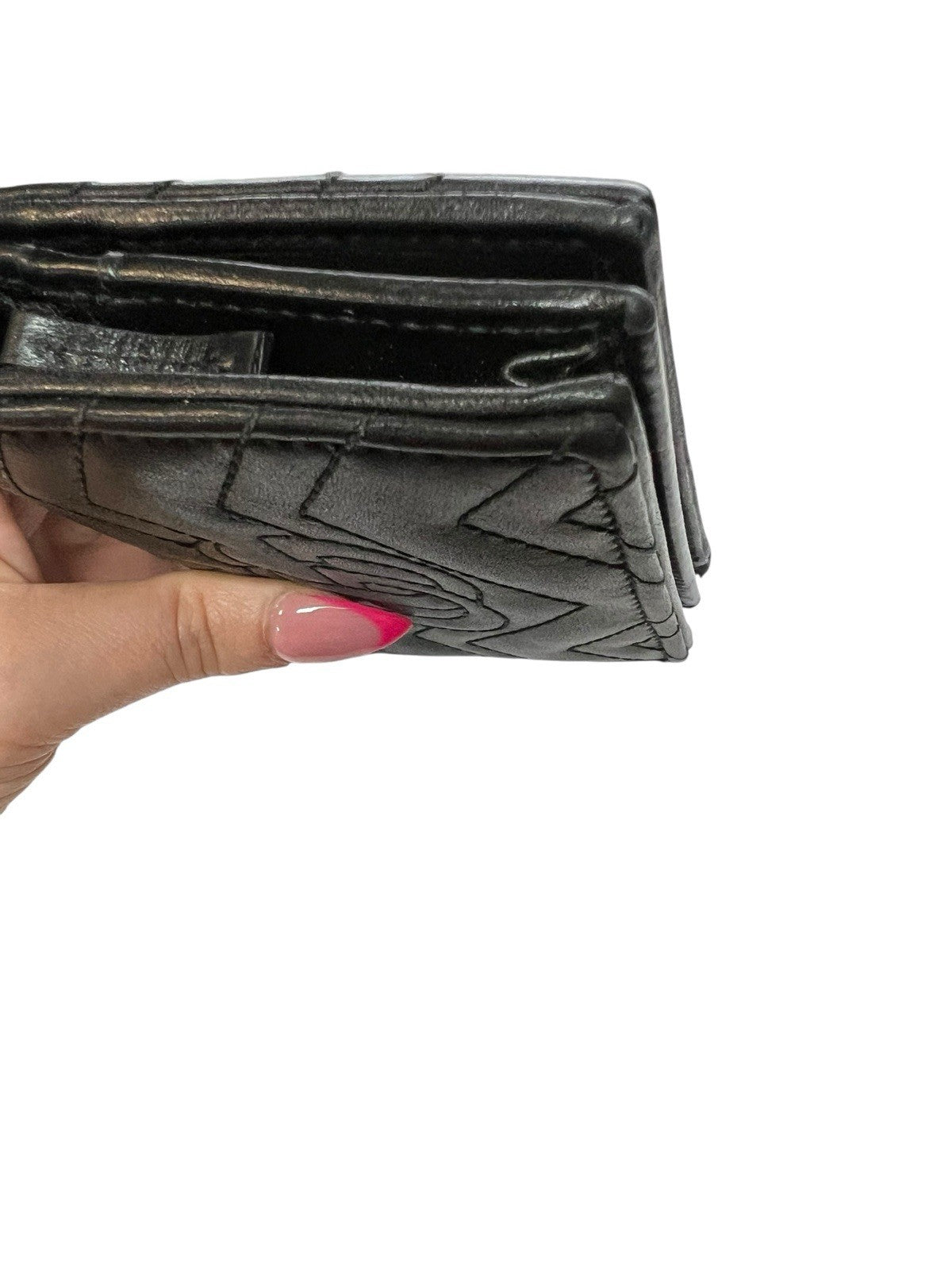 - Inside: 5 card slots, open pocket, 1 zipper pocket, 1 bill compartment