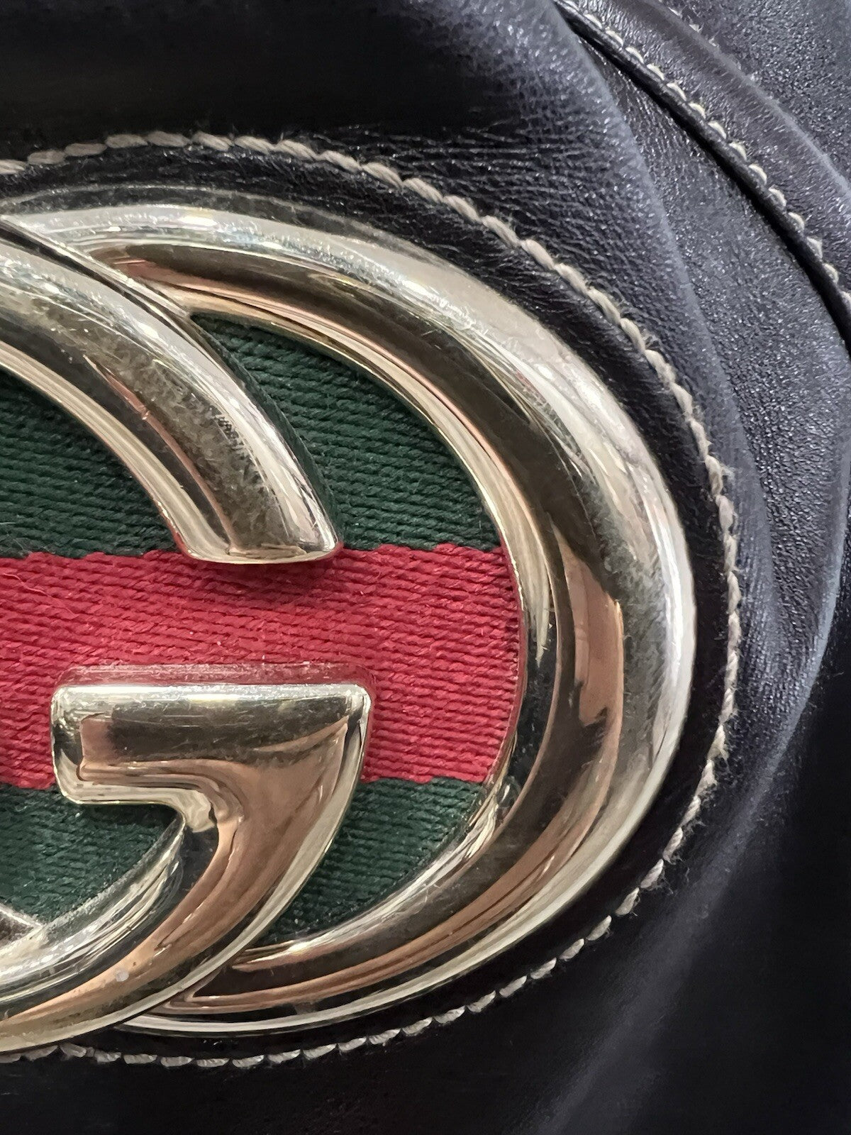 Gucci Leather Medium Britt Dark Brown Shoulder Bag With Authenticity