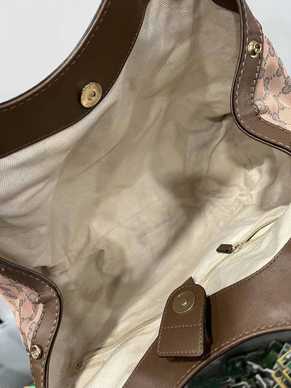 Gucci Pink/Grey Brown Canvas Limited Edition Sukey Tote RARE