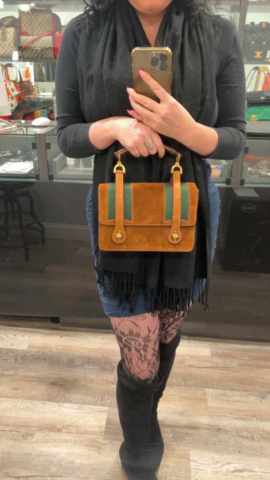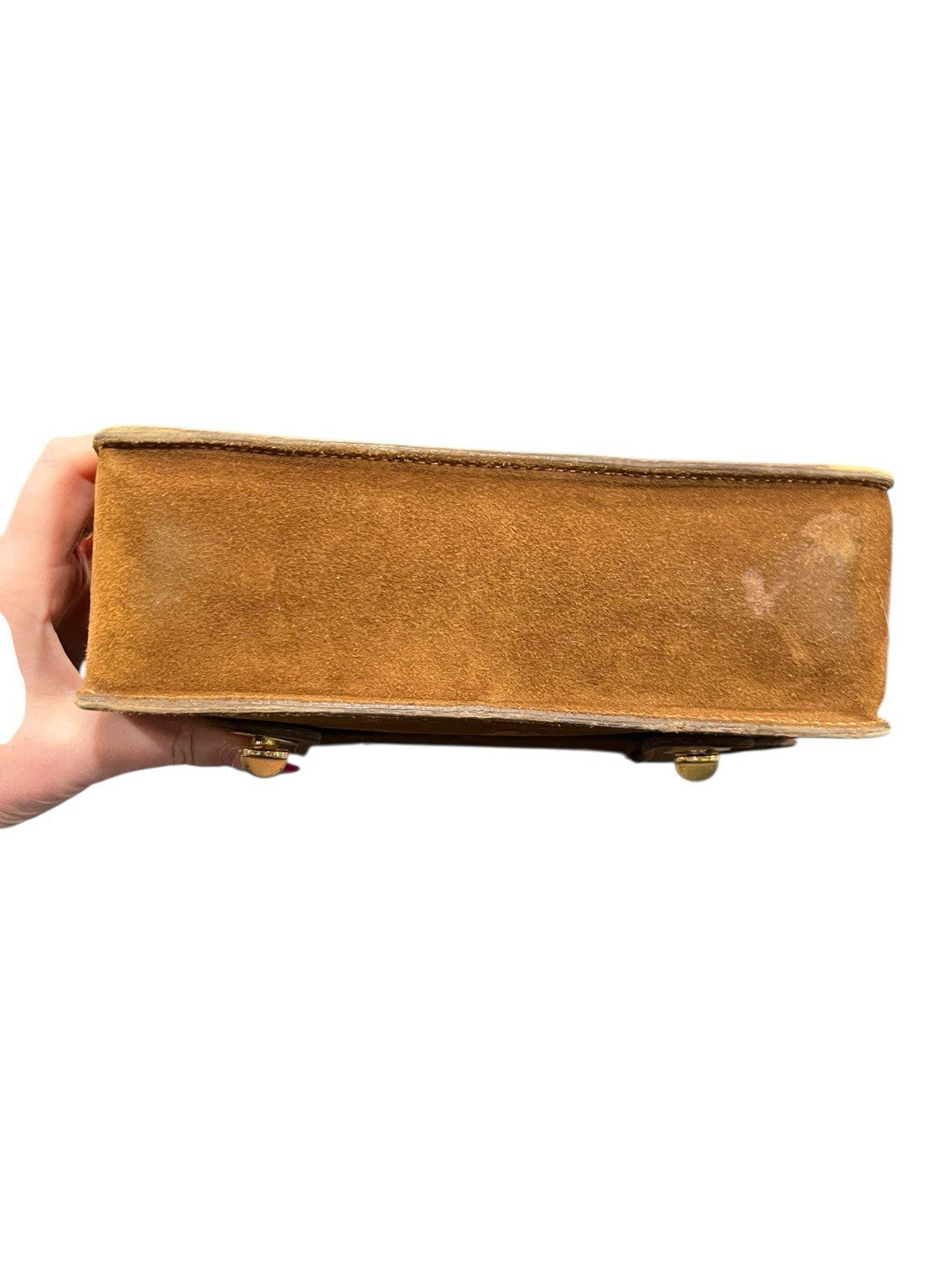 Gucci Vintage Cognac Suede Bamboo Handle Lunchbox Top Handle Bag RARE