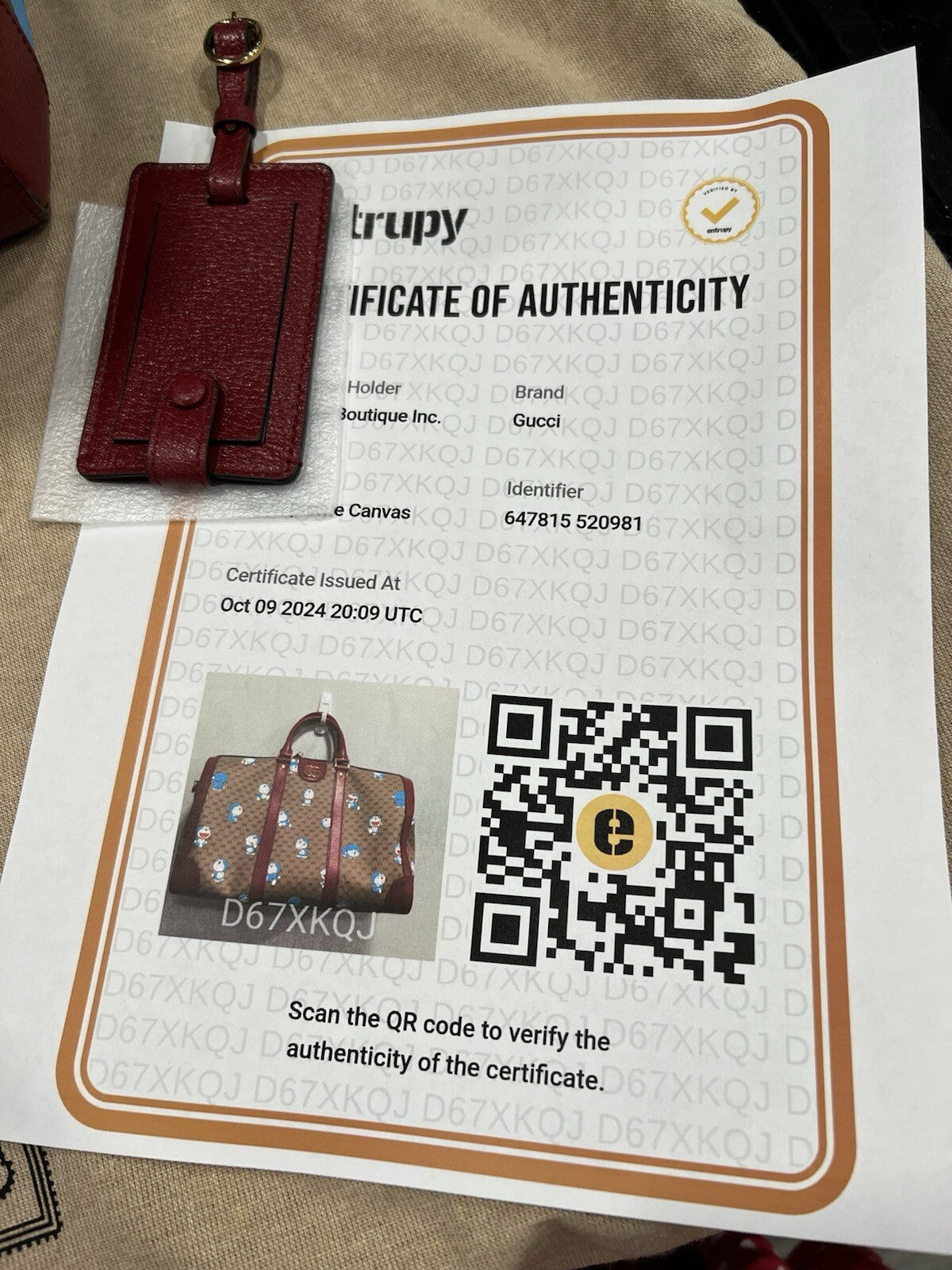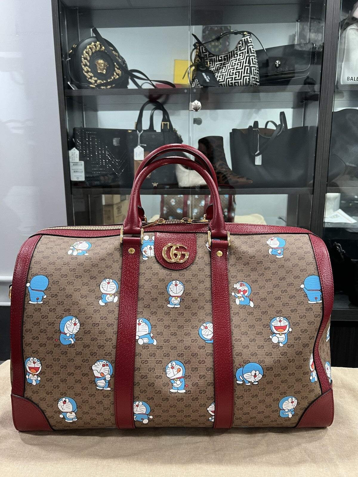 Gucci X Fujiko Pro Doraemon GG Supreme Canvas Boston Duffle Bag NWOB
