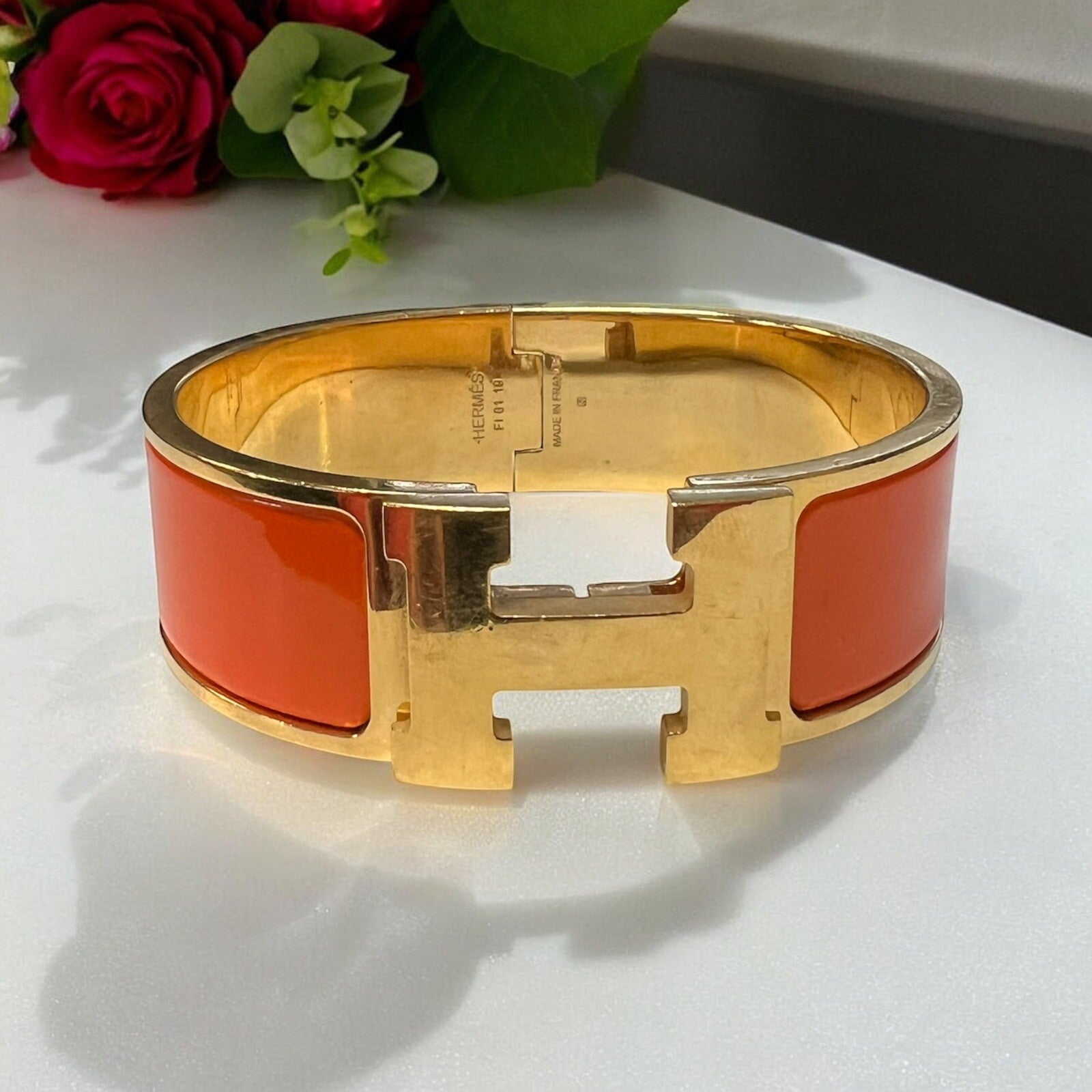 Hermes Clic Clac H Orange/Gold Bracelet PM