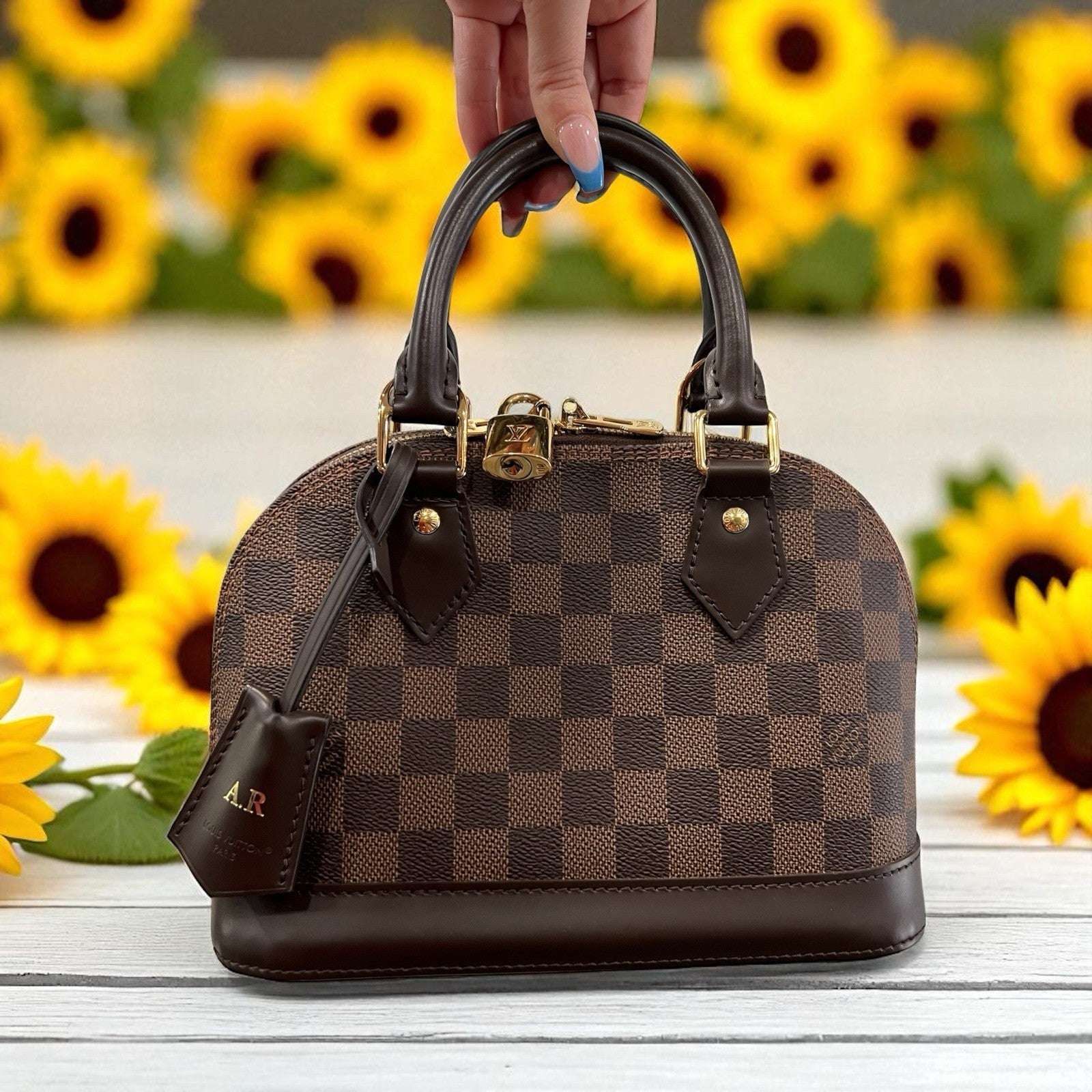 Louis Vuitton Damier Ebene Alma BB W/Lock Key & Duster (Monogrammed No Strap)