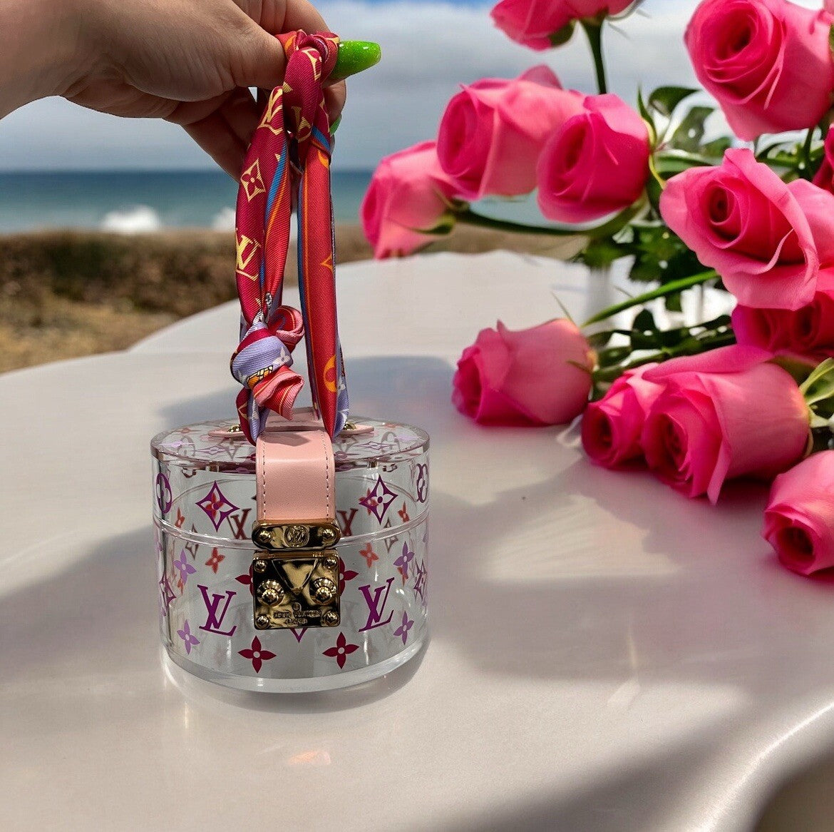 Louis Vuitton Monogram Scott Box With LV Scarf Handle Includes Box & Duster