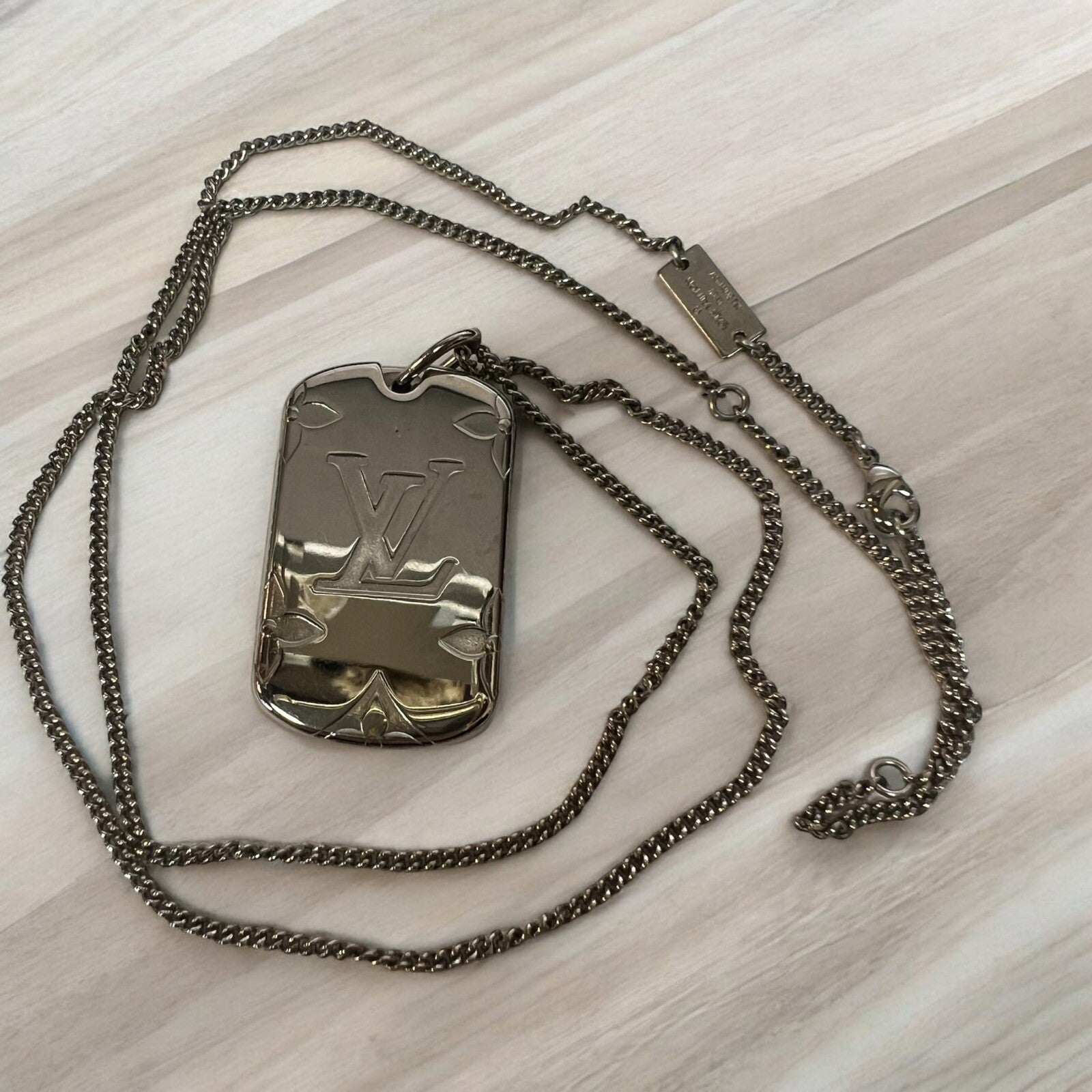 Louis Vuitton Silver-Toned Palladium Finish Locket Necklace Adjustable