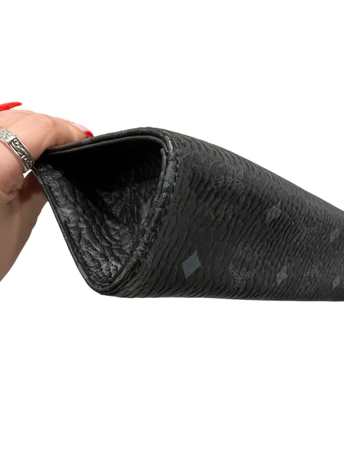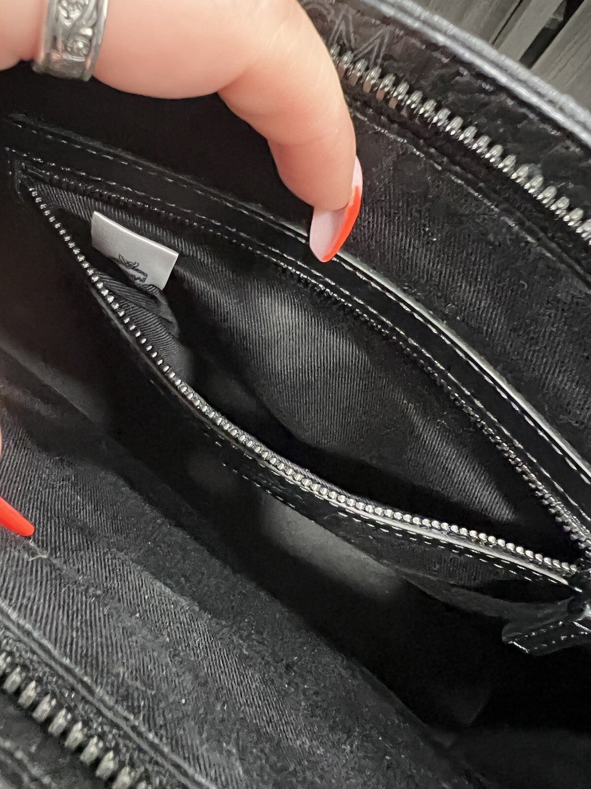 Item is New with tags and has never been worn, there is no duster or box and the inside might have white fibers on it from the original MCM white paper stuffing there is currently no wear on the inside.