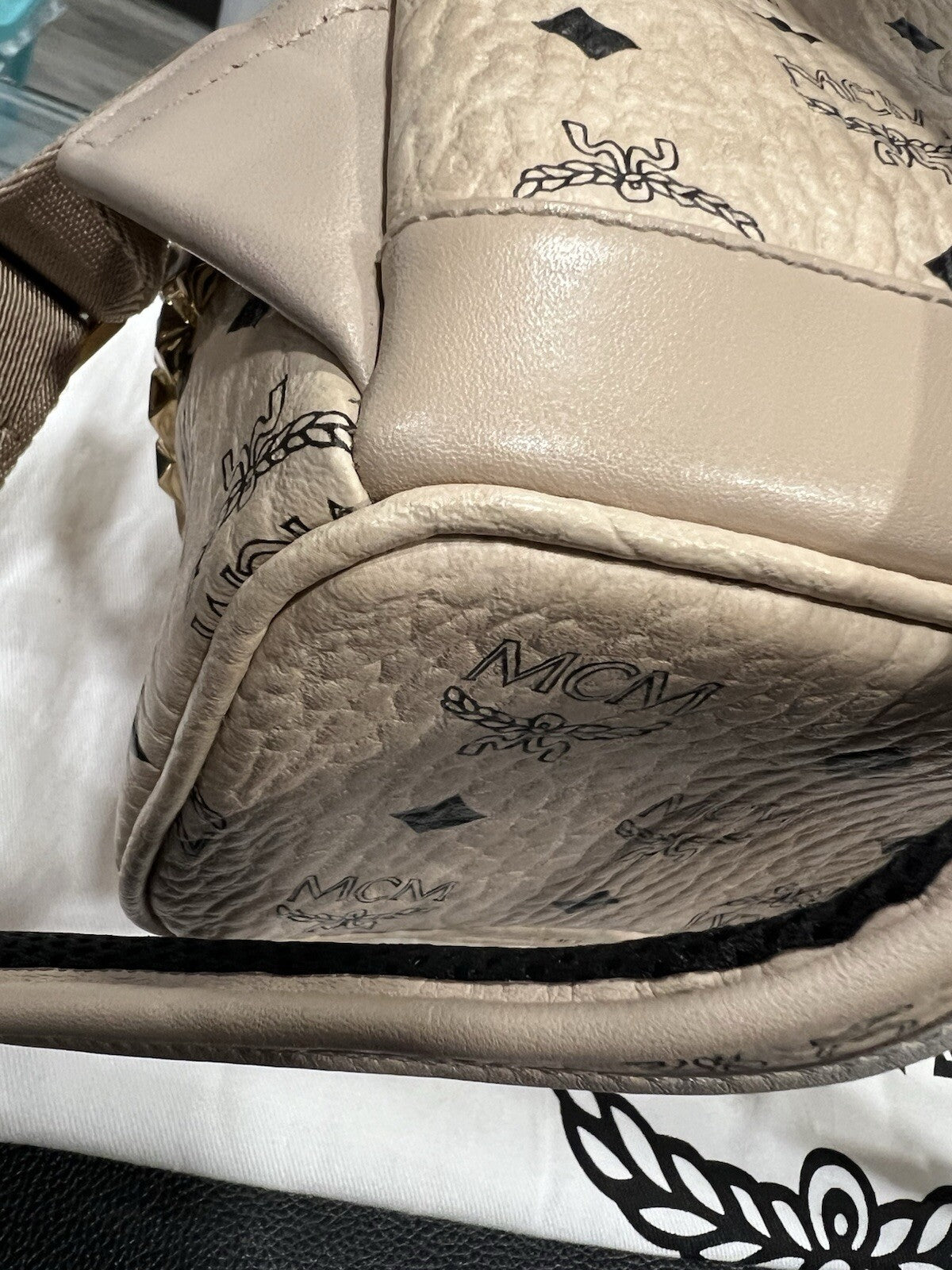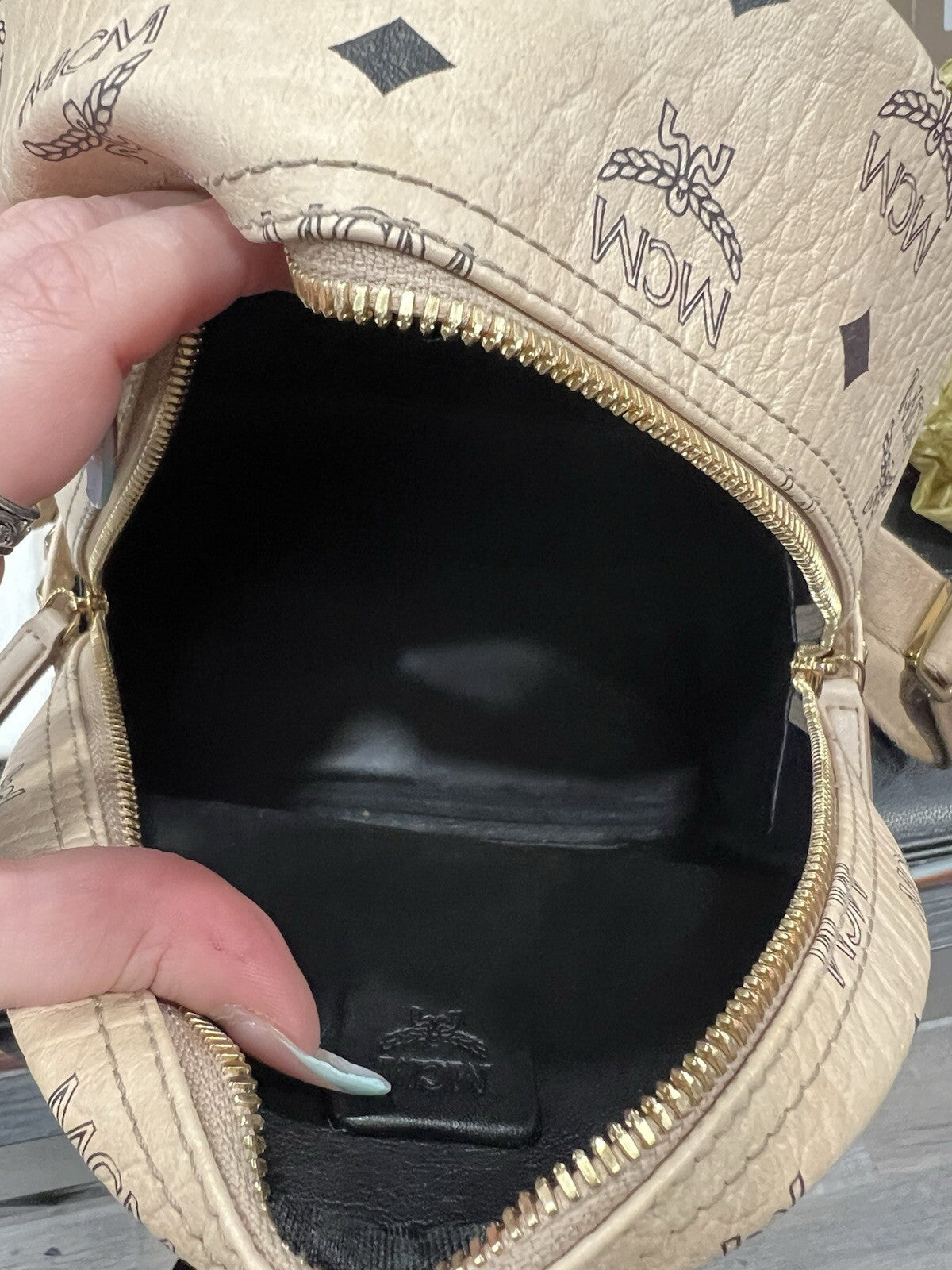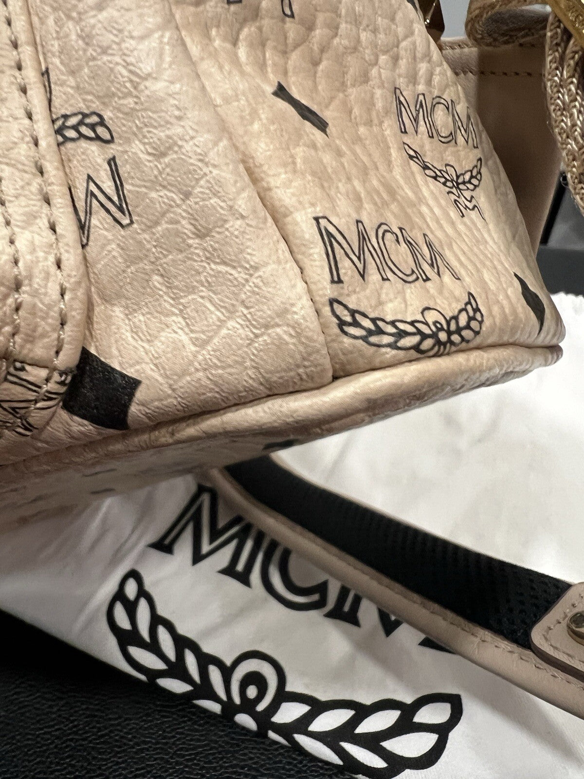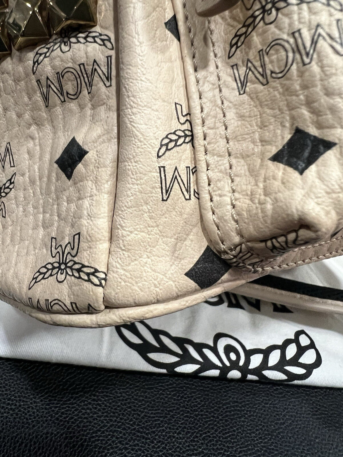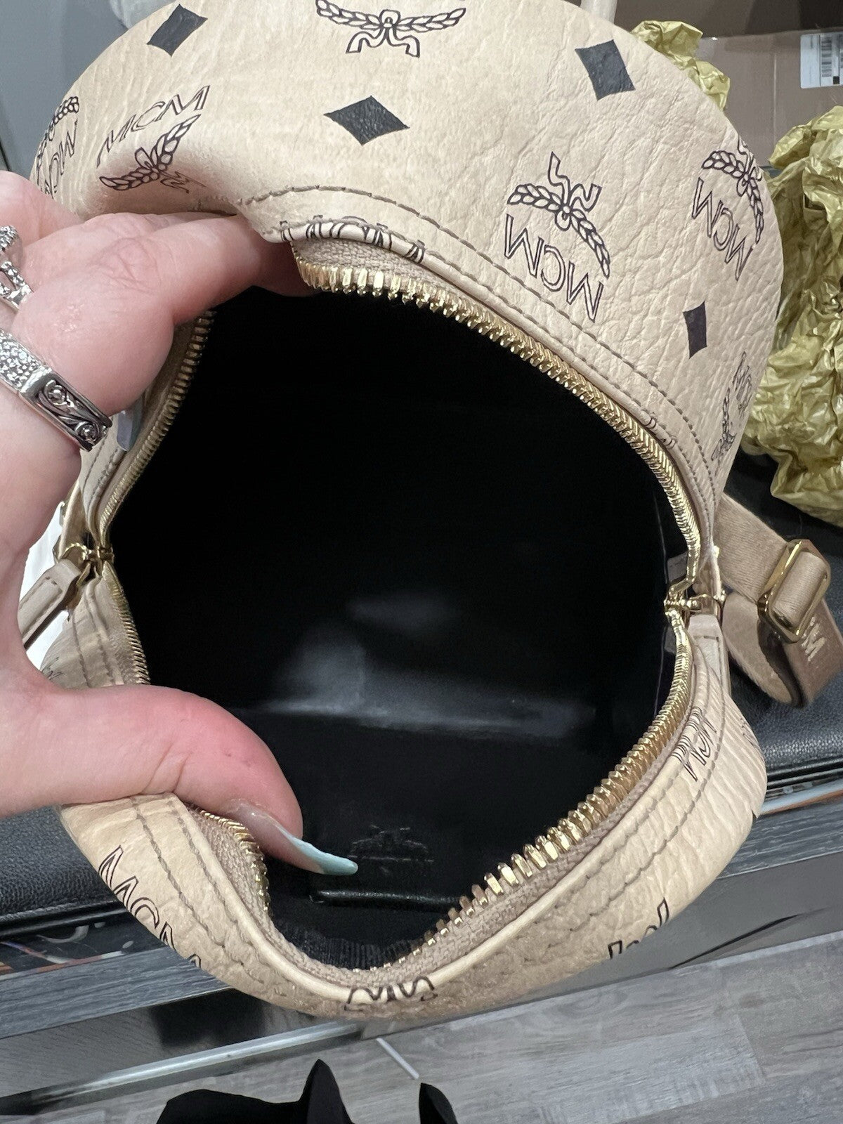 MCM Stark Side Studded Beige Visetos Studded Small Backpack