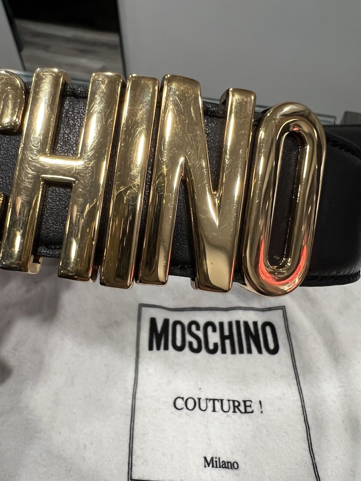 Moschino Men's Logo Belt Black/Gold W/Duster Size 31"-36" Retail $325