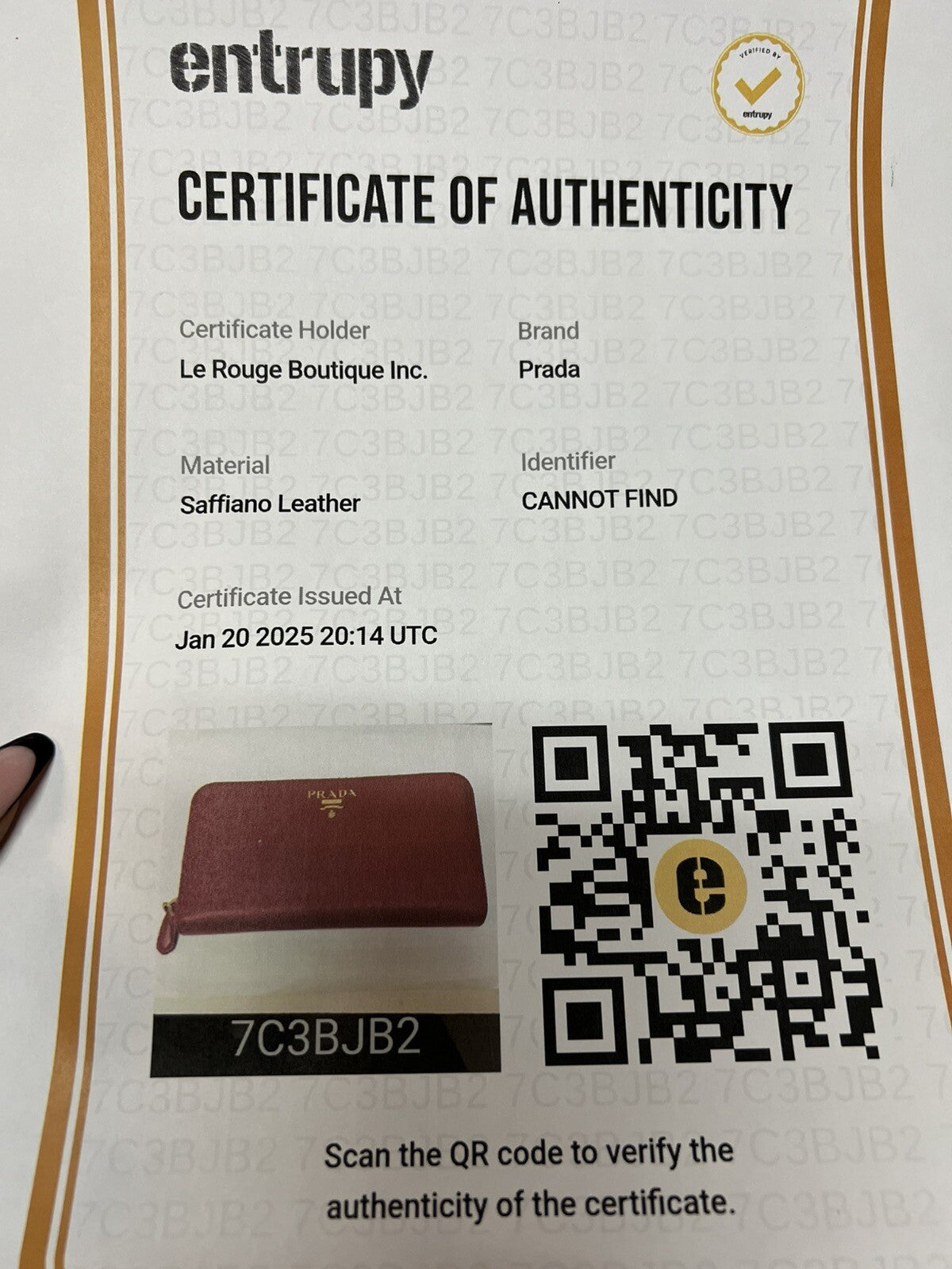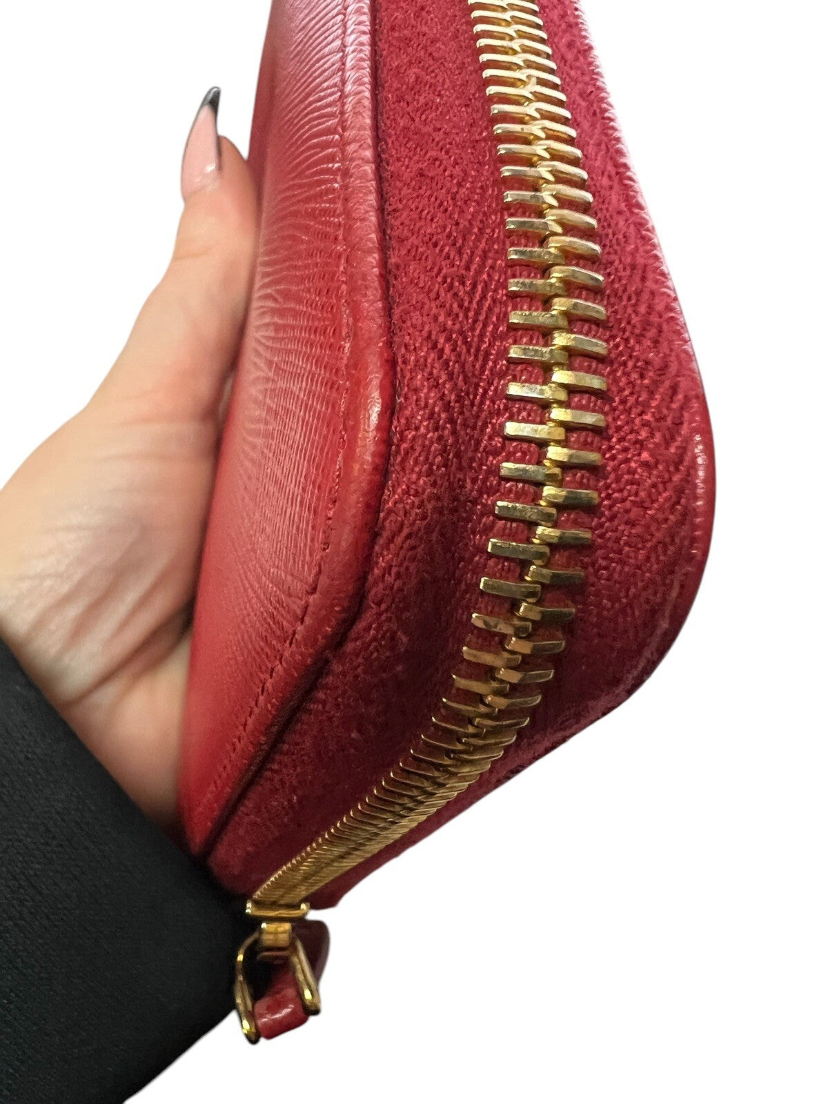 Prada Saffiano Red Leather Zip Around Wallet W/COA