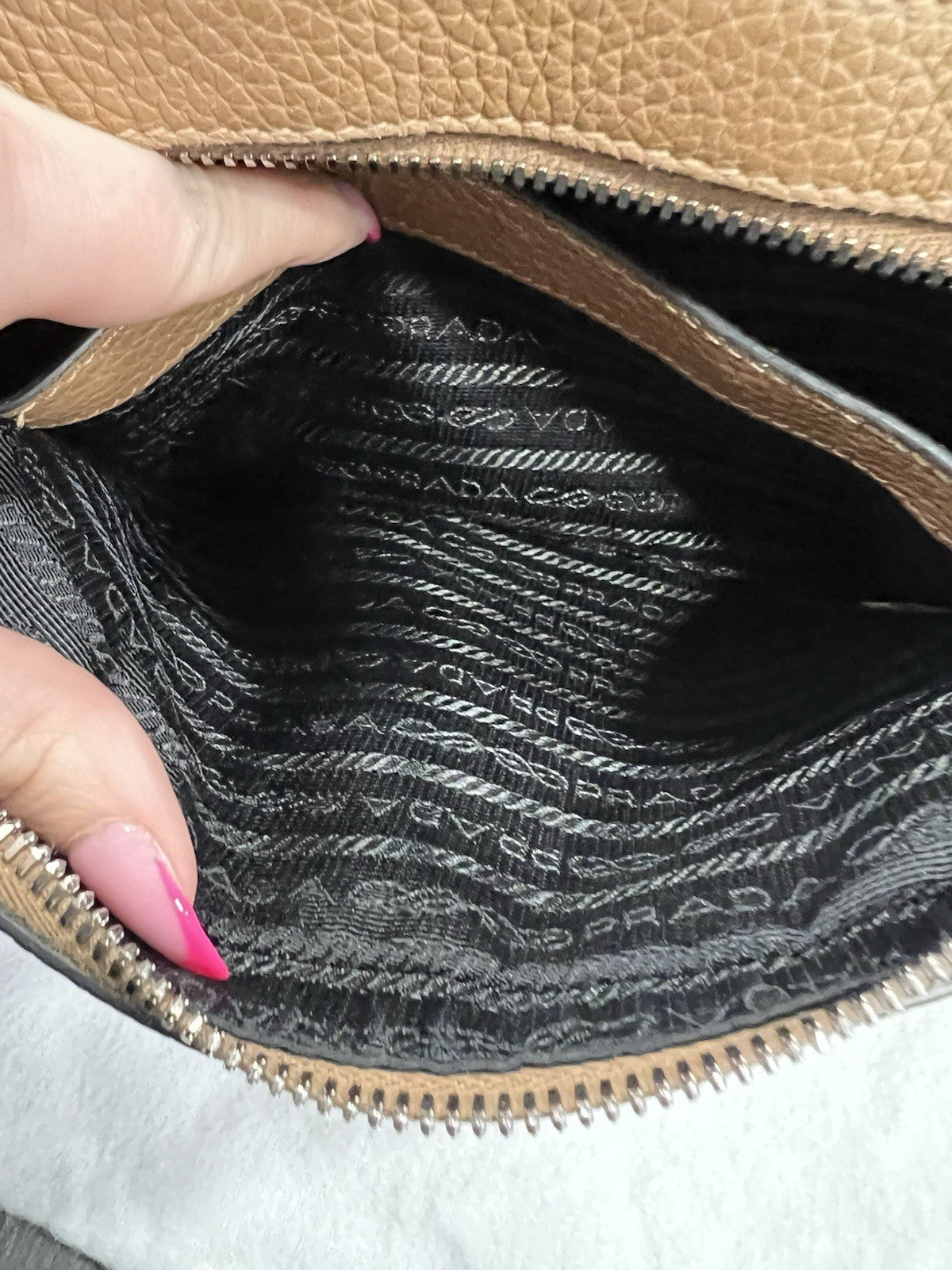 Prada Small Vitello Double Zipper Caramel Crossbody/Shoulder Bag Retail $2750