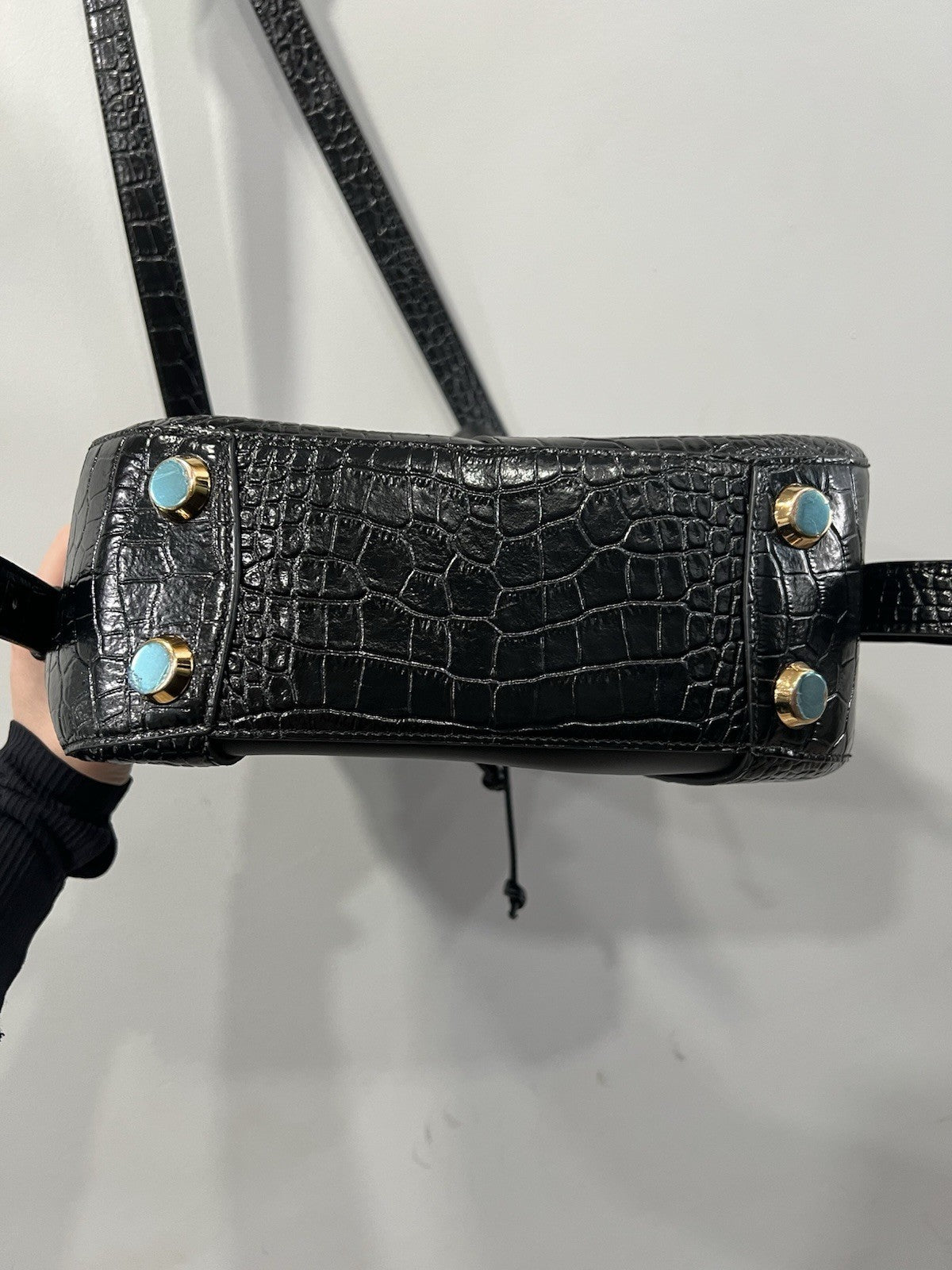Senreve Fiore Vegan Leather Black Croc Embossed Bucket Bag Retail $825