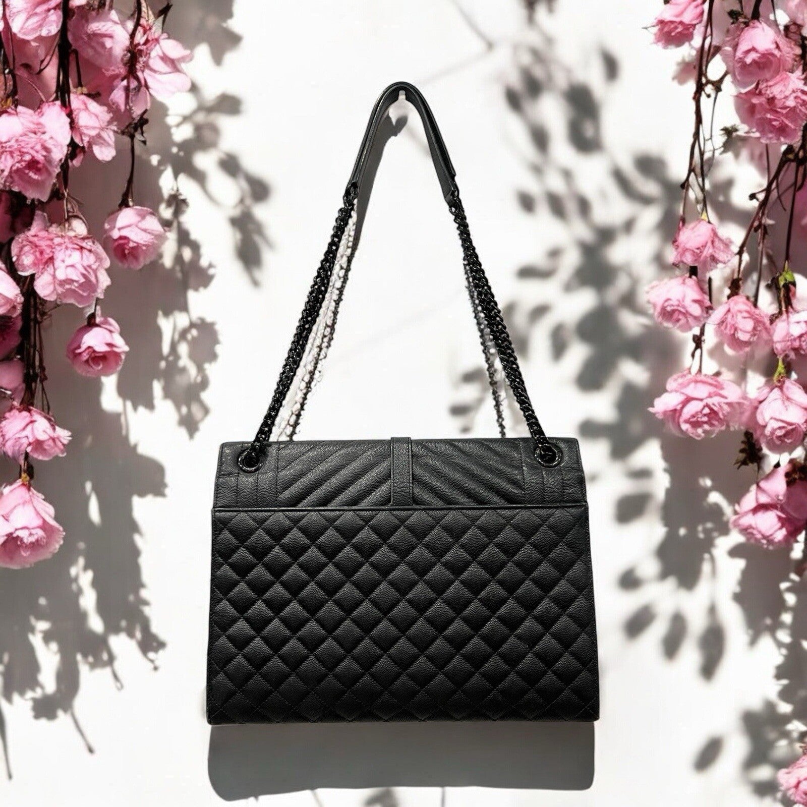 YSL Saint Laurent Black Large Triquilt Bag Retail $3300