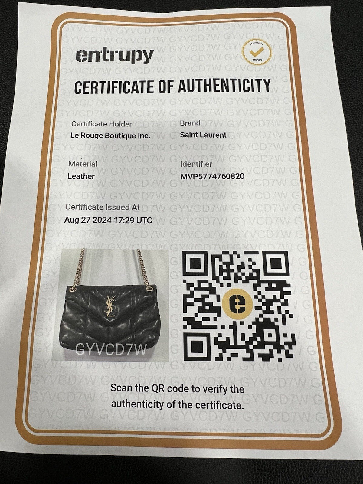 YSL Saint Laurent Small Lou Puffer Flap Bag W/Certificate MSRP $3300